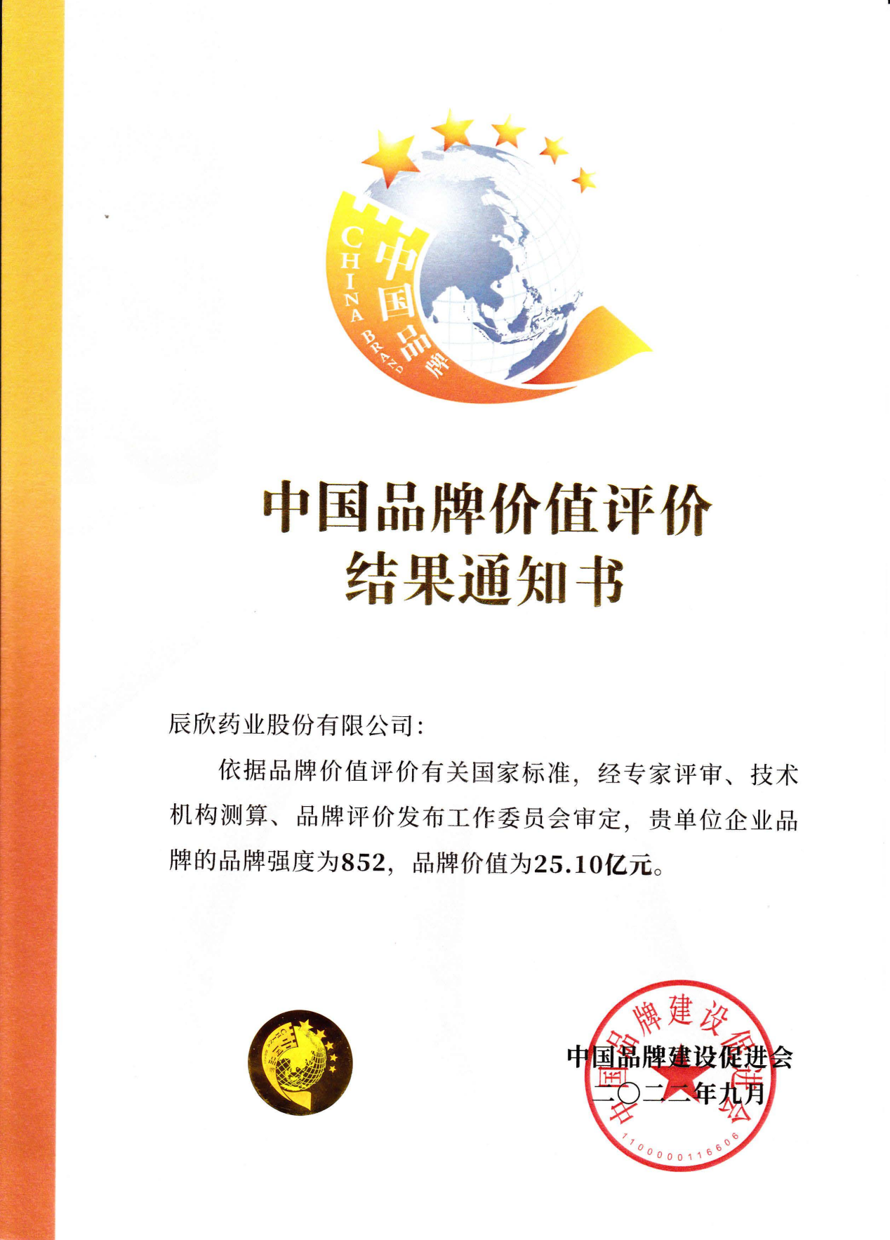 品牌价值是品牌竞争力的核心体现,也是评估品牌建设成果的主要指标。我国明确提出建立“中国特色的品牌价值评价机制”,遵循“名牌要在市场竞争中产生,名牌最终要被消费者认可”的基本准则,山东省品牌建设促进会在中国评促会的指导下,以质量、创新、服务、有形资产和无形资产‘五要素’为核心开,坚持“科学、公正、公开、公认”工作原则,连续四年开展了山东省企业品牌价值评价工作,辰欣药业能够上榜,也印证了辰欣药业的品牌价值及行业影响力。此外,在今年9月份发布的“2022中国品牌价值评价信息榜”中辰欣药业也成功上榜。