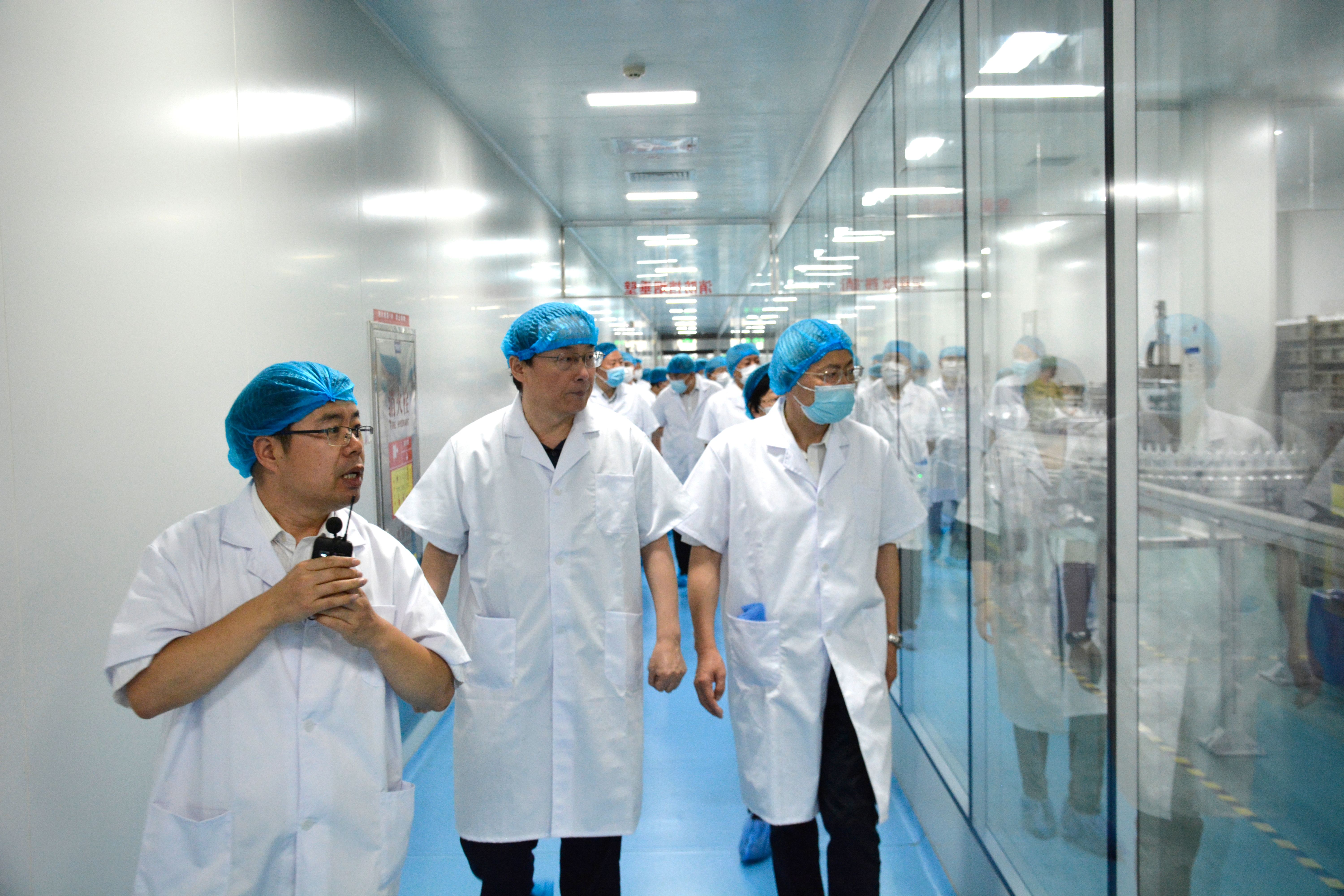 随后,汤涛一行到113直立式软袋生产车间实地查看产品生产现场,查看了一线职工的工作环境,了解职工的生活、工作情况。公司现代化生产车间,全自动、有序、干净整洁的药品生产线给调研组留下了深刻印象。副总经理崔效廷继续介绍道,公司引进全自动“注、拉、吹”一体机、自动灯检机、全自动后包装线,与智能仓库实现联动,可实现成品的自动包装入库。设备自动化、智能化程度较高,对人员的技能水平要求也较高。而技工教育集团推行的新型学徒制培养模式,实现了“企校双制、工学一体”,切实解决公司技能人才短缺问题。