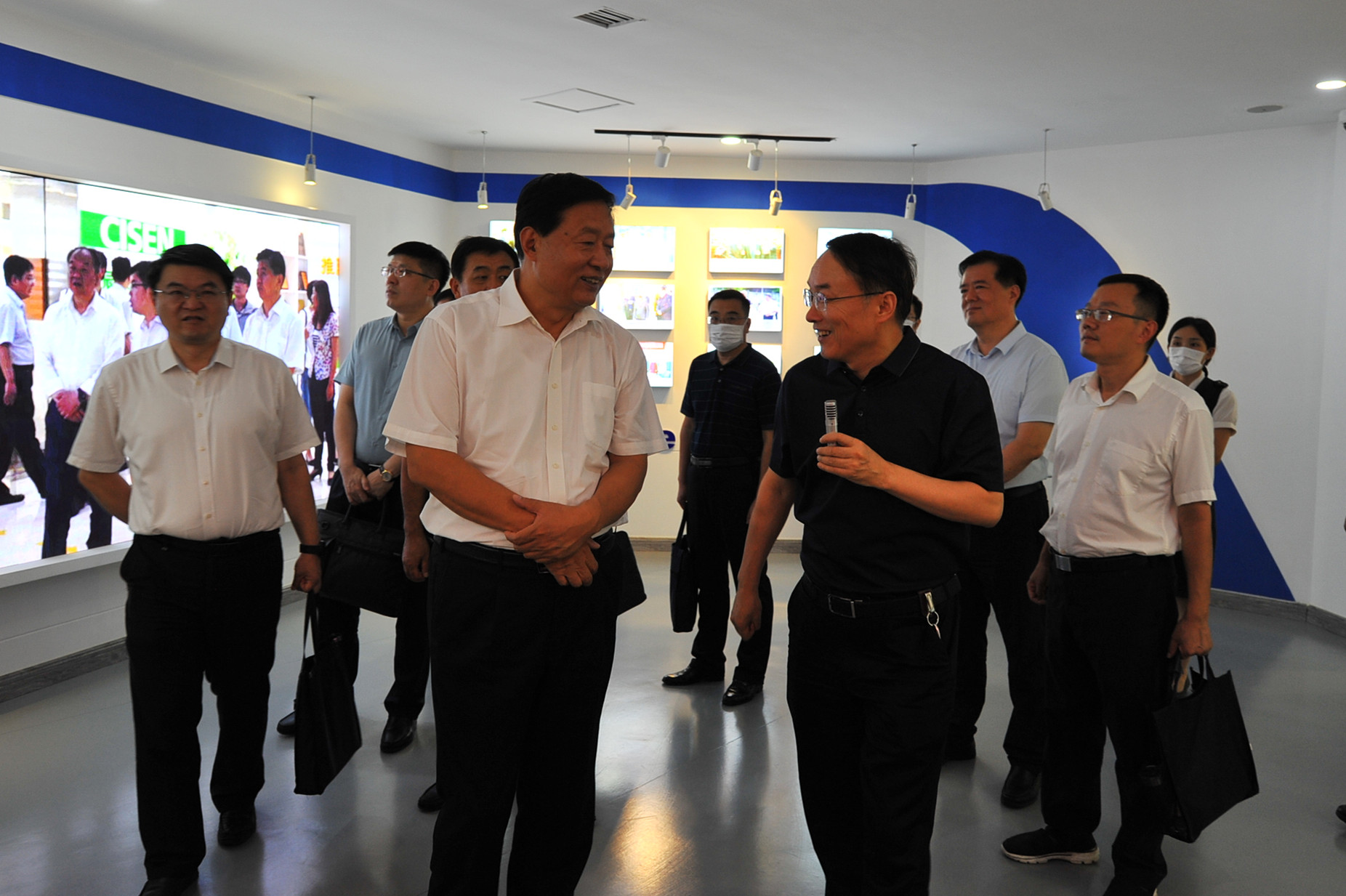 张红旗一行走进企业展厅详细了解企业发展历程、生产经营、发展规划等情况,并举行座谈会。杜振新董事长就公司发展情况做了详细汇报。