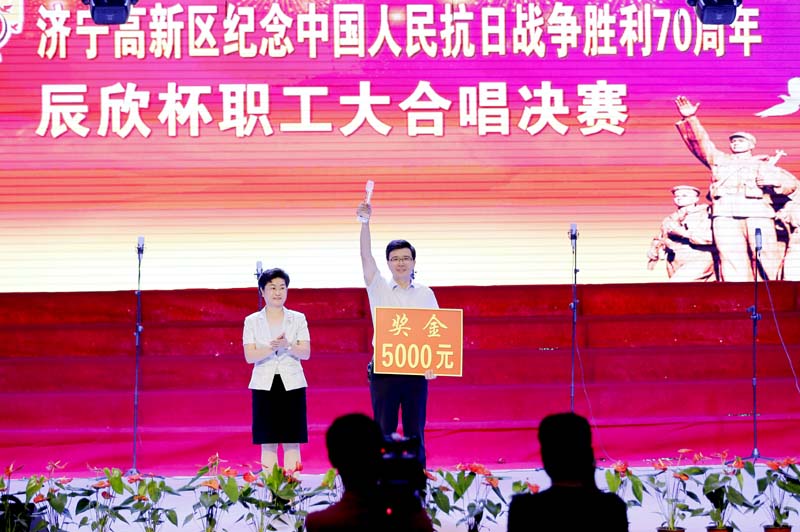本次大赛的举办旨在纪念中国人民抗战胜利70周年暨中华全国总工会成立90周年,得到社会的广泛关注,共有18支代表队参赛。辰欣药业作为此次比赛的协办单位,积极组织广大员工备赛、参赛,组建了90人的合唱队伍参加了初赛和决赛,并取得了优异成绩。为保证比赛的公平性,辰欣药业作为此次比赛的协办单位,成绩不参与名次评选。组委会为感谢辰欣药业为筹办此次比赛付出的努力,专门为辰欣药业代表队颁发特别奖。
