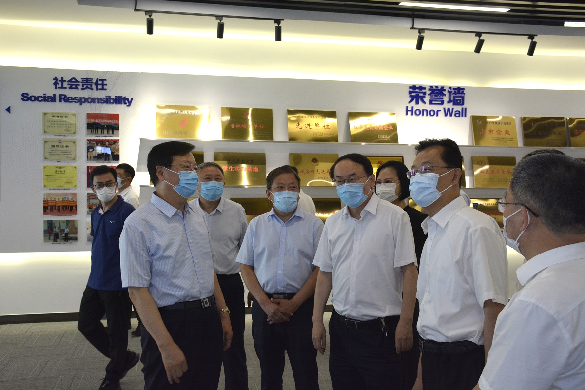 6月14日,省市场监管局局长兼省知识产权局局长侯成君一行到辰欣药业参观调研,市委副书记、市长于永生,副市长张东,市市场监管局局长候典峰,高新区管委会副主任罗会涛参加活动,辰欣药业董事长兼总经理杜振新、副总经理崔效廷陪同接待。